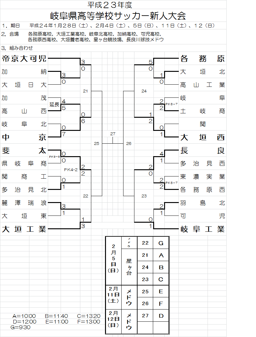 H23 岐阜県高校サッカー新人大会 2回戦結果