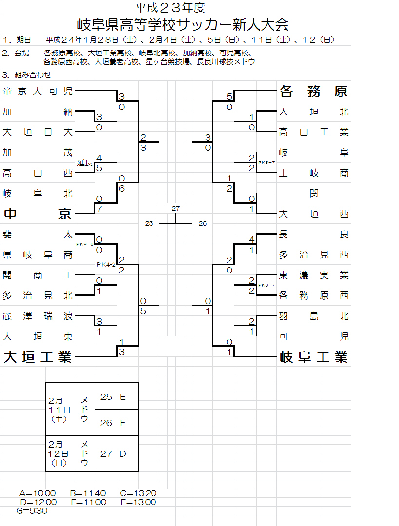 H23 岐阜県高校サッカー新人大会 3回戦結果