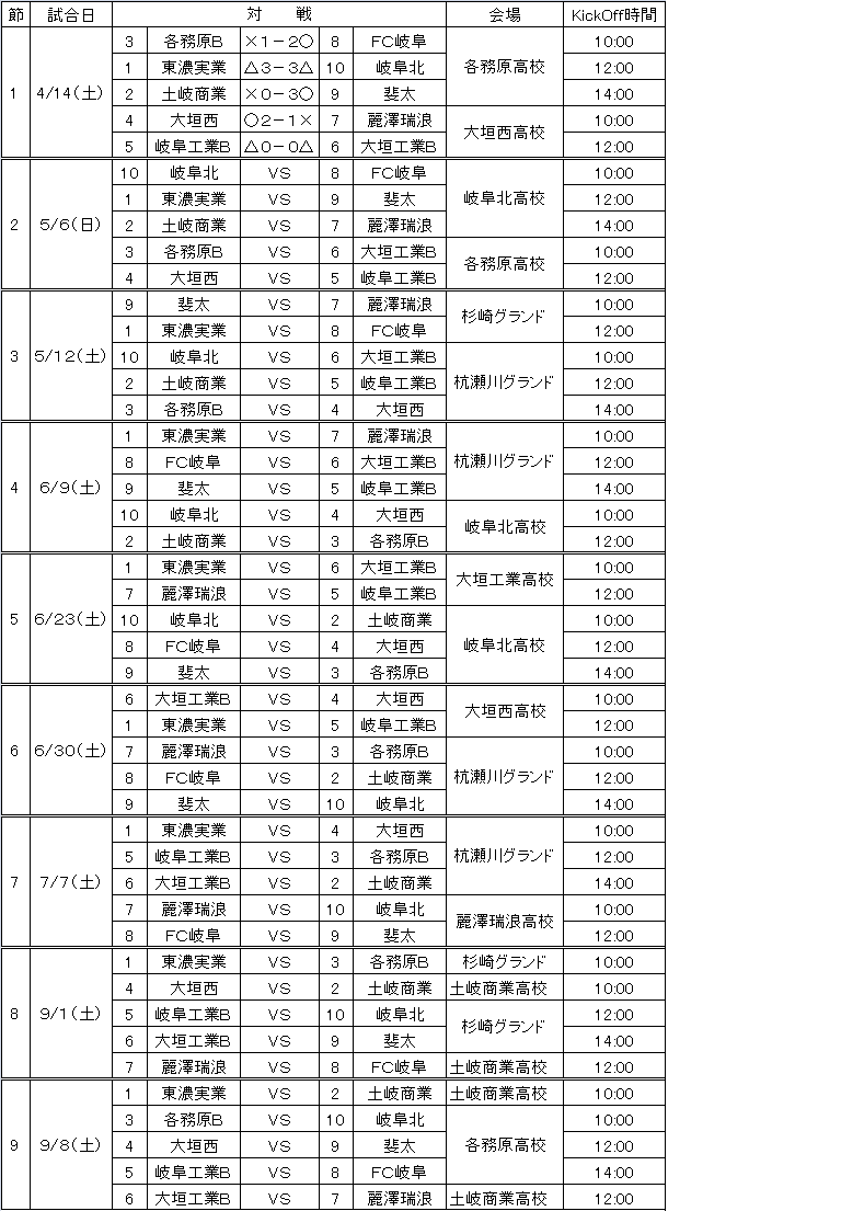 G2リーグ Uー18 2012 第1節結果