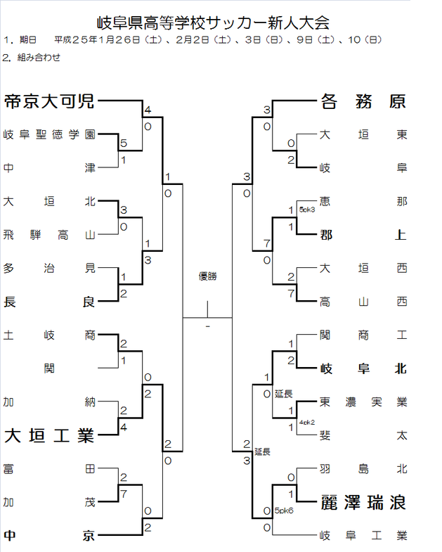 H24年度 岐阜県高校サッカー新人大会 3回戦結果
