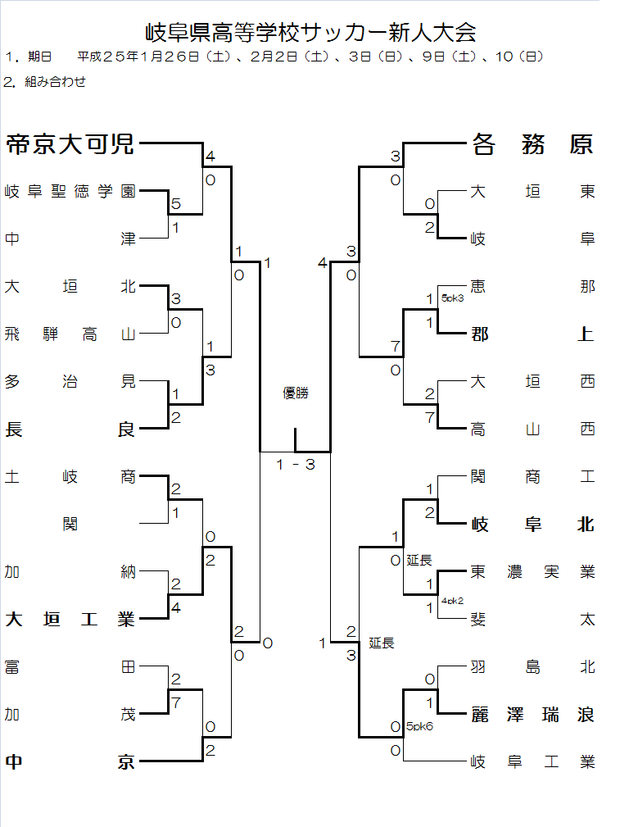 H24年度 岐阜県高校サッカー新人大会 結果