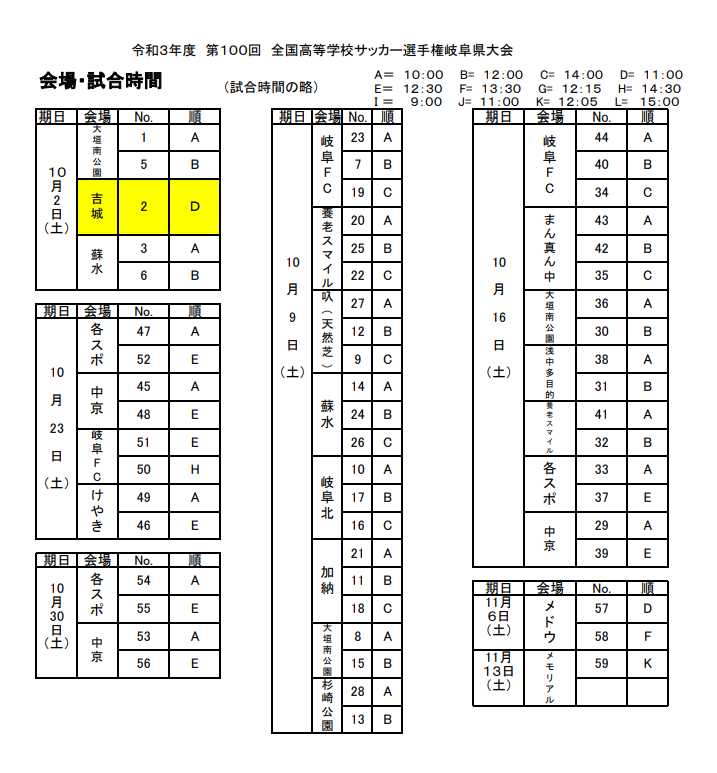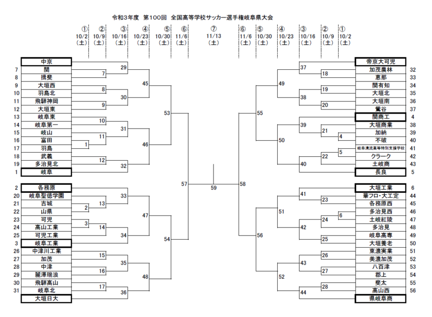 【2種】令和3年度 第100回全国高等学校サッカー選手権岐阜県大会 組合せ
