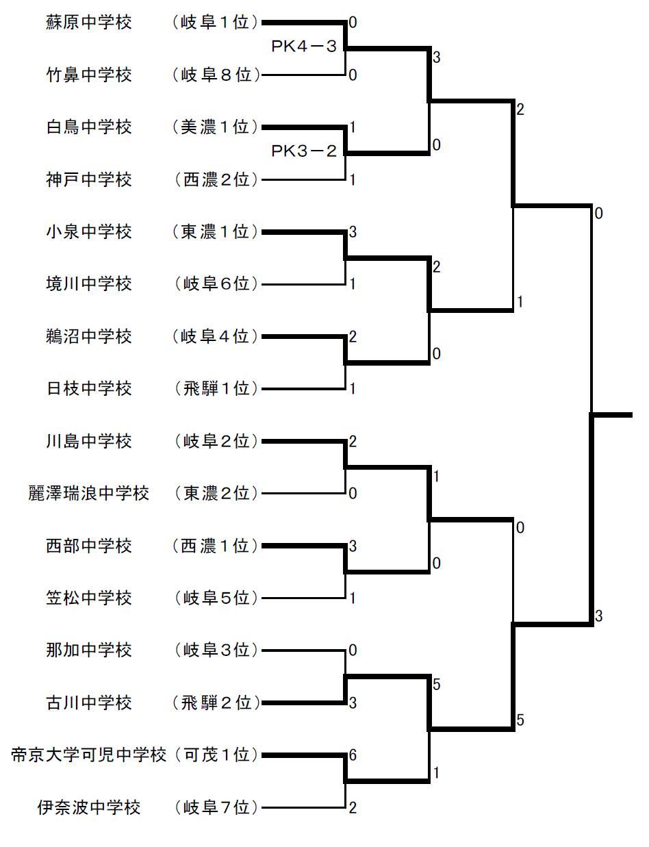優勝 飛騨市立古川中学校準優勝 各務原市立蘇原中学校3位 多治見市立小泉中学校3位 各務原市立川島中学校