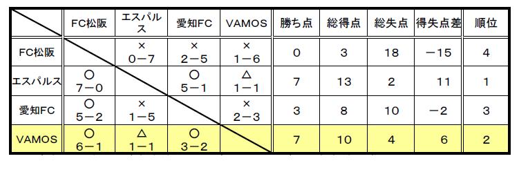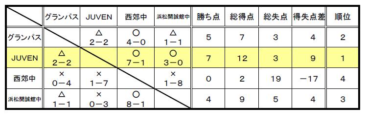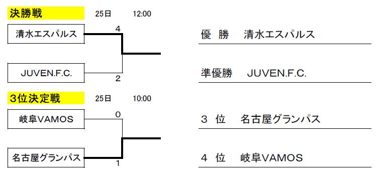 1位JUVEN.F.C.が決勝戦、2位名古屋グランパスが3位決定戦へ進出