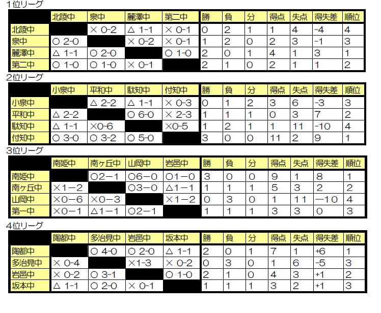 2007年度 岐阜県中学生サッカー新人リーグ 順位リーグ