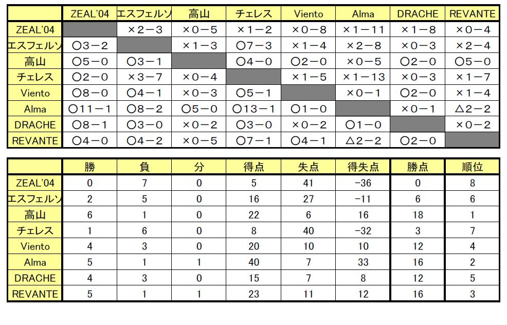 2007年度 岐阜県中学生新人リーグ(クラブ3部)結果