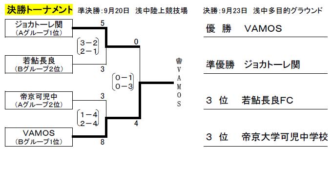 1位ジョカトーレ関と2位帝京可児中が決勝トーナメントへ進出
