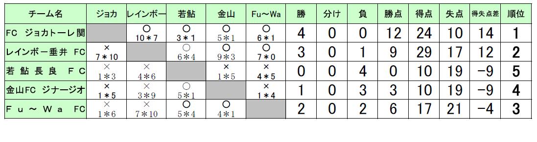 U-14 岐阜県フットサルリーグ(12月) 結果