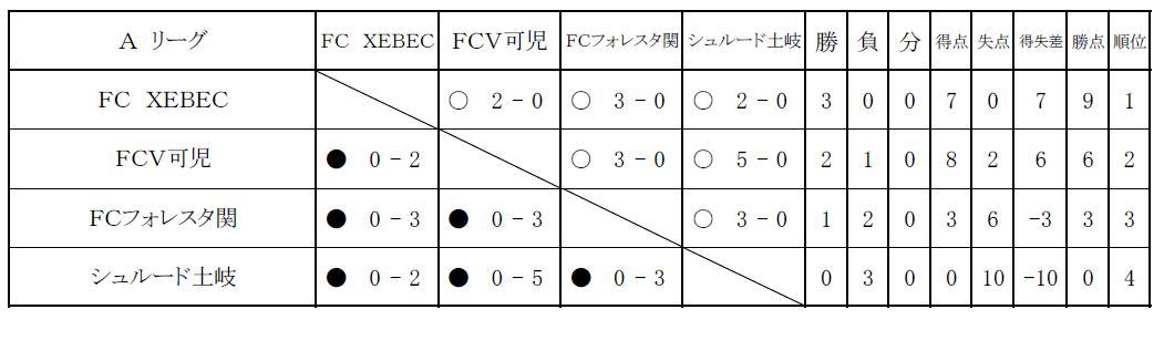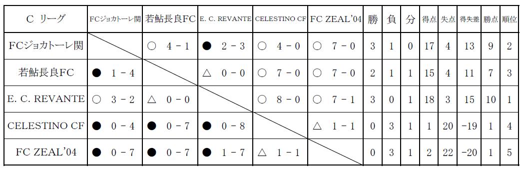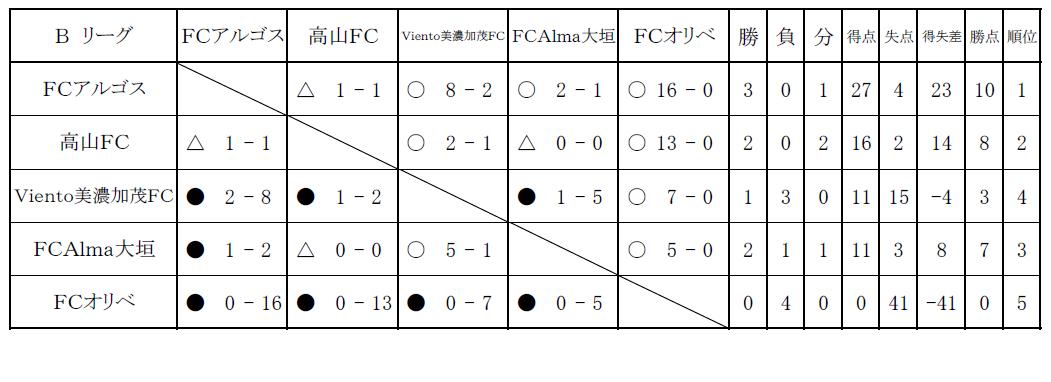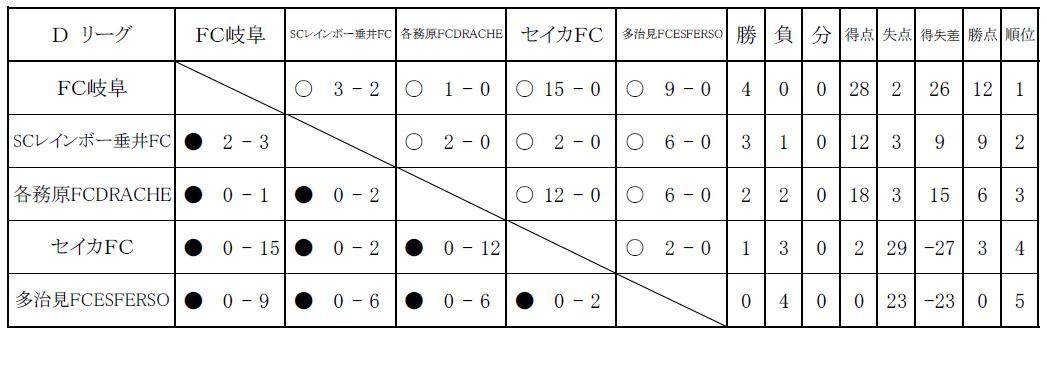 09' 第24回 日本クラブユースサッカー選手権(U-15)岐阜県1次予選 戦績表