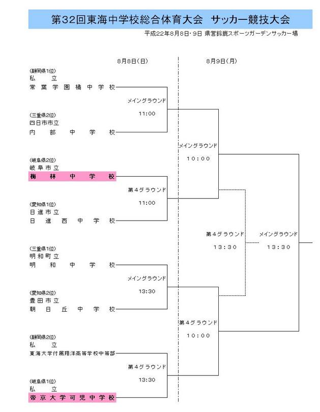 3種 H22東海中学総体 組合せ
