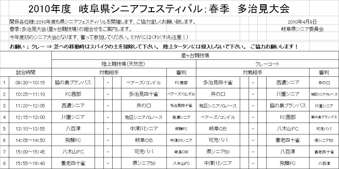 2010シニアフェスティバル春季多治見大会組合せ決まる。