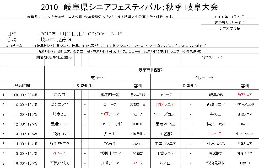 2010県シニアフェスティバル;秋季岐阜大会組合せ決まる。
