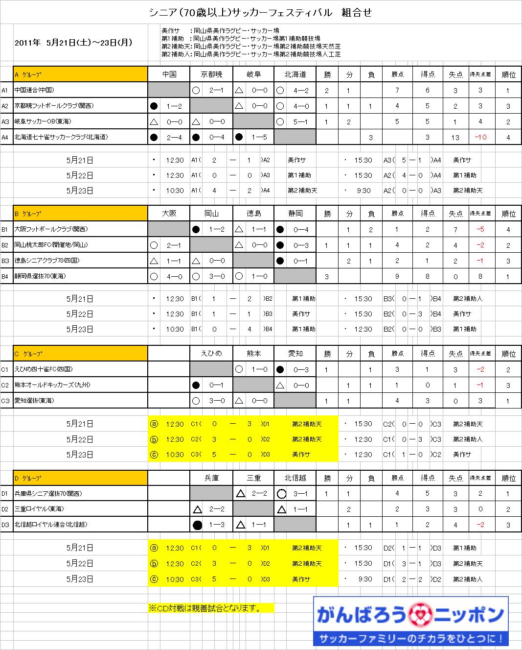 全国シニア(70歳以上)サッカーフェスティバル試合結果