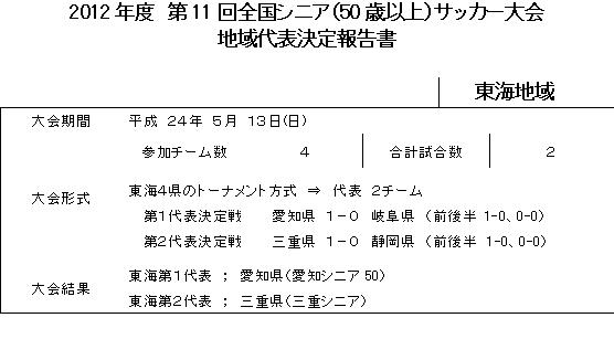 2012年度全国シニア(50歳以上)サッカー大会東海予選結果