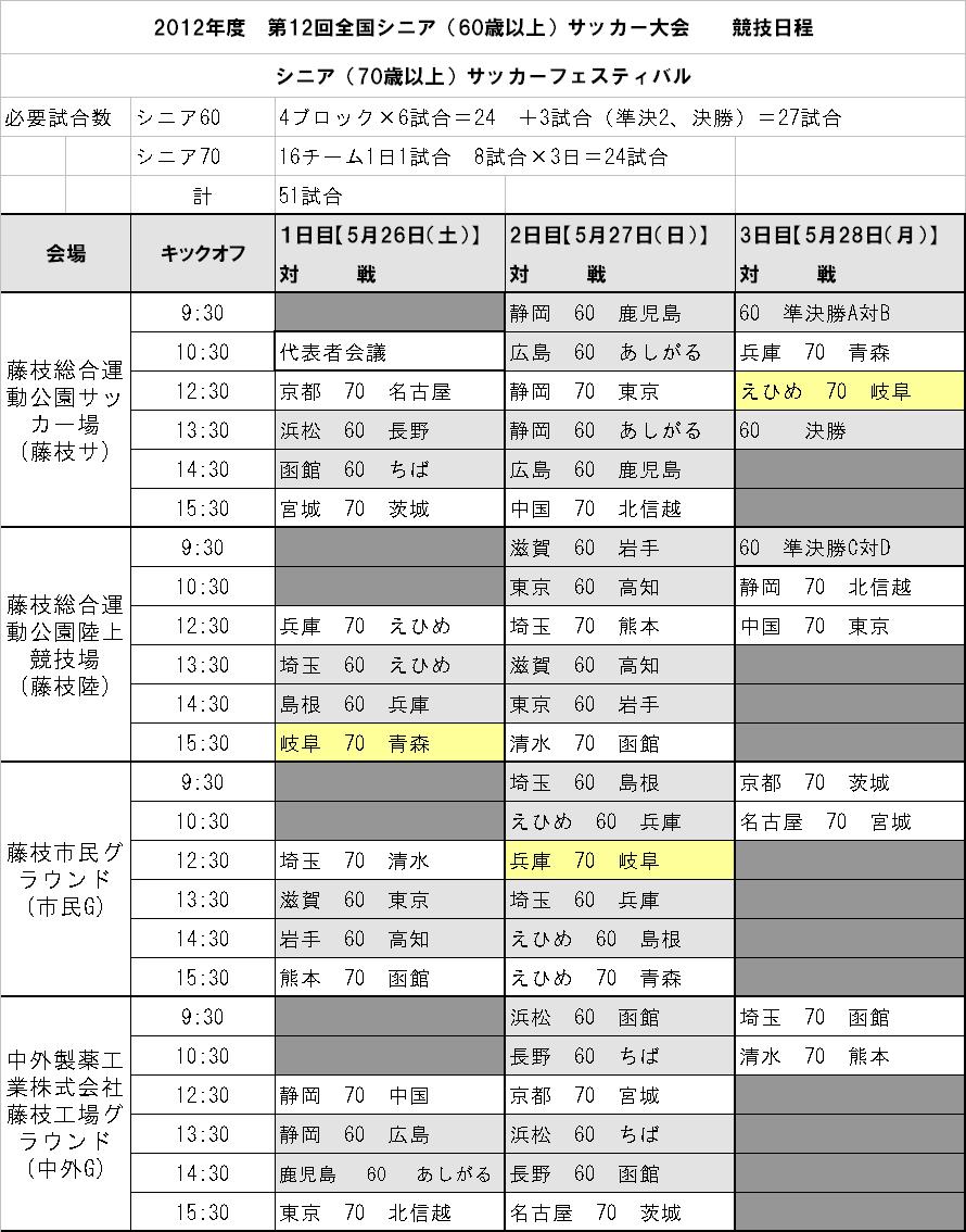 第12回全国シニア(70歳以上)サッカーフェスティバル組合せ