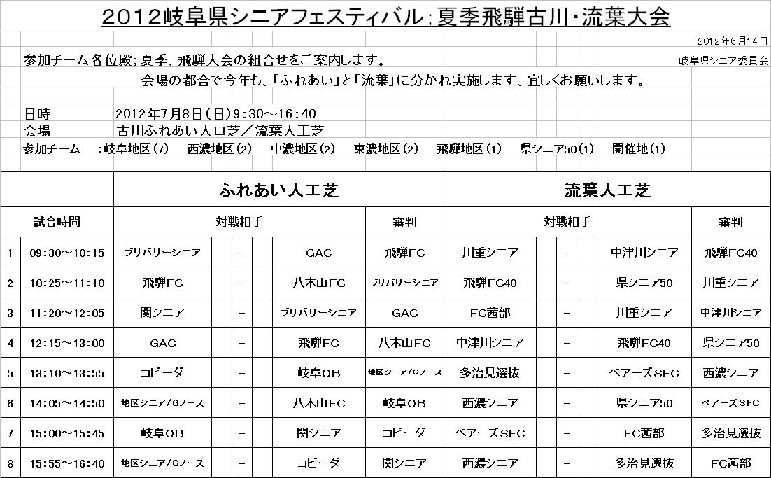 県シニアフェスティバル夏季古川・流葉大会組合せ
