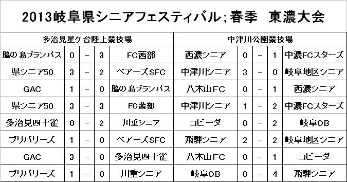 2013年度 岐阜県シニアフェスティバル;春季 東濃大会結果