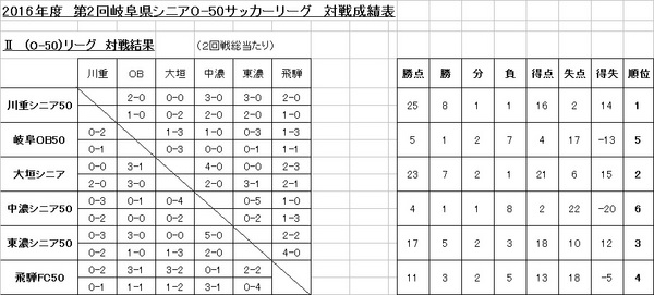 県シニアリーグO-50最終結果