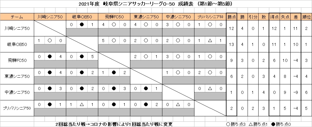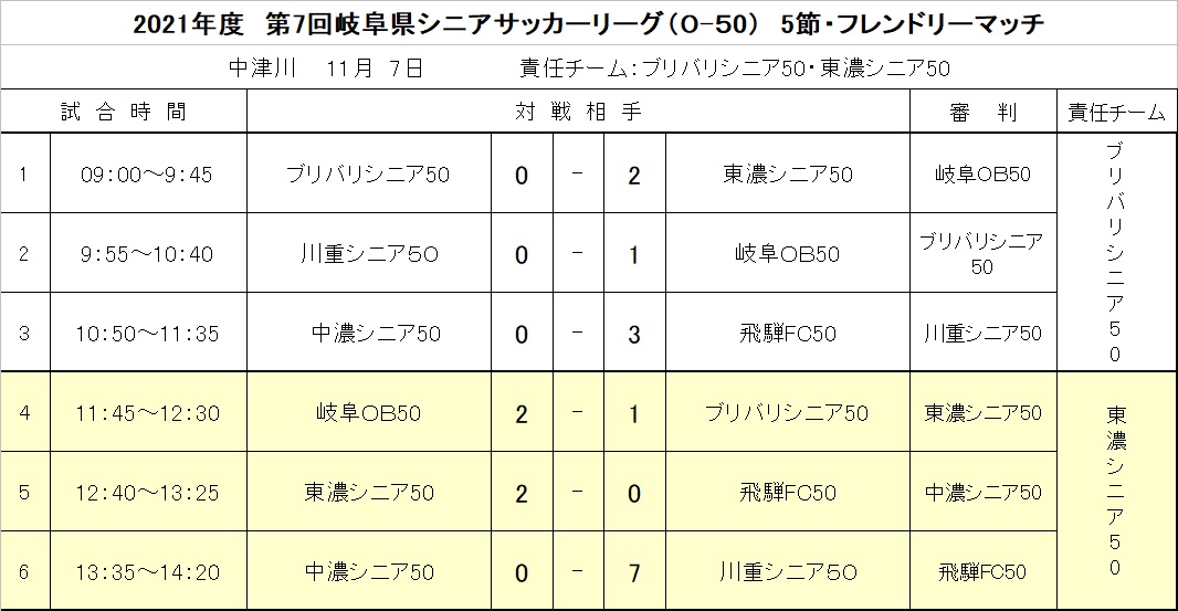 県シニアリーグO-50 5節結果