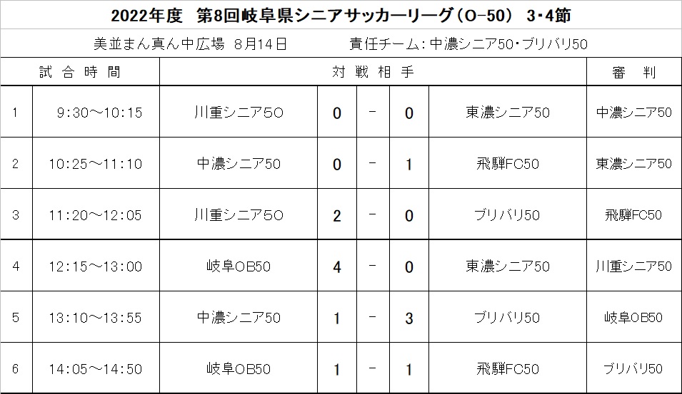 【シニア】県シニアリーグO-50 3・4節結果