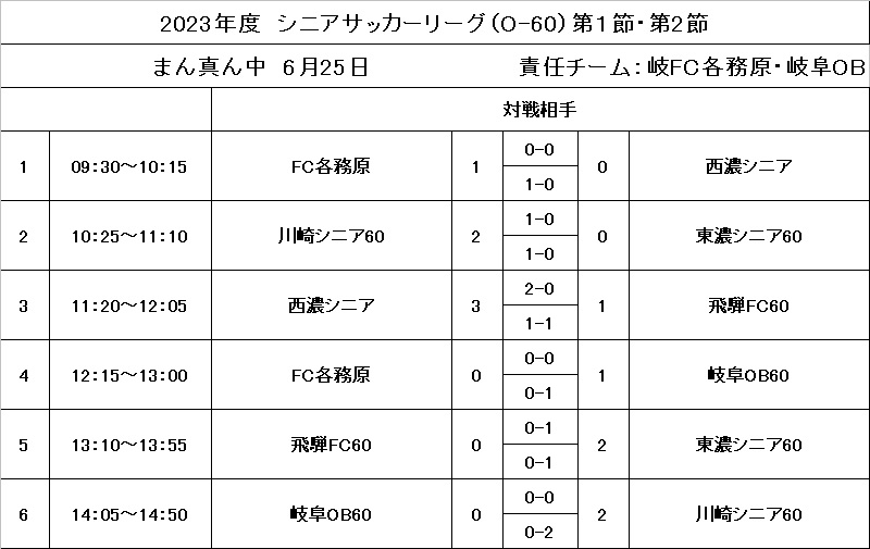 【シニア】県シニアO-60リーグ 第1・2節結果
