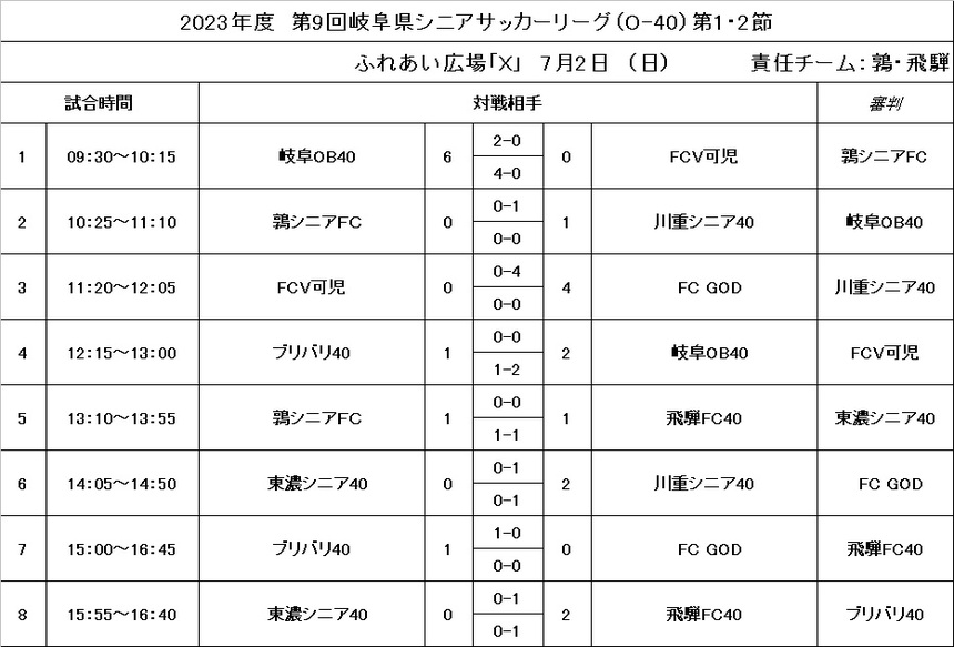 【シニア】県シニアO-40 1・2節結果