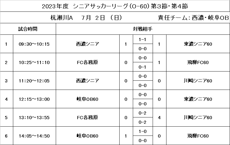【シニア】県シニアO-60リーグ 第3・4節結果