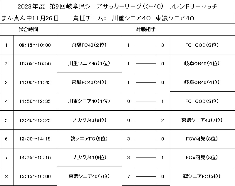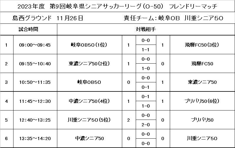 県シニアO-40・O-50フレンドリーマッチ結果