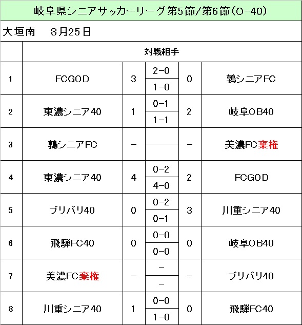 2024県シニアリーグO-40 5・6節結果