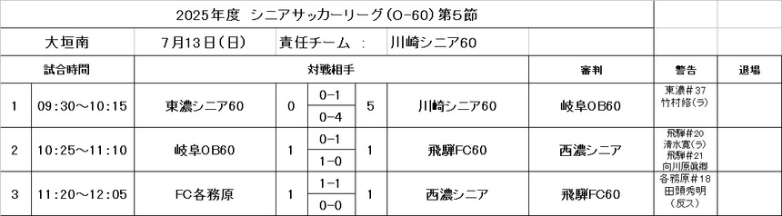 【シニア】2025年度県シニアサッカーリーグO-60第5節結果