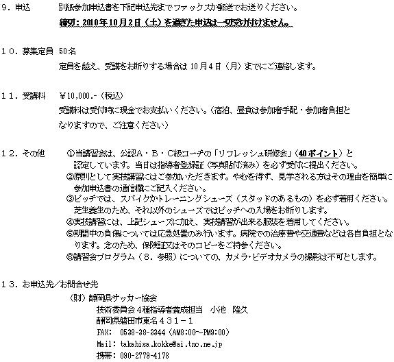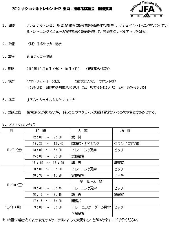 2010ナショナルトレセンU-12東海:指導者講習会を開催します