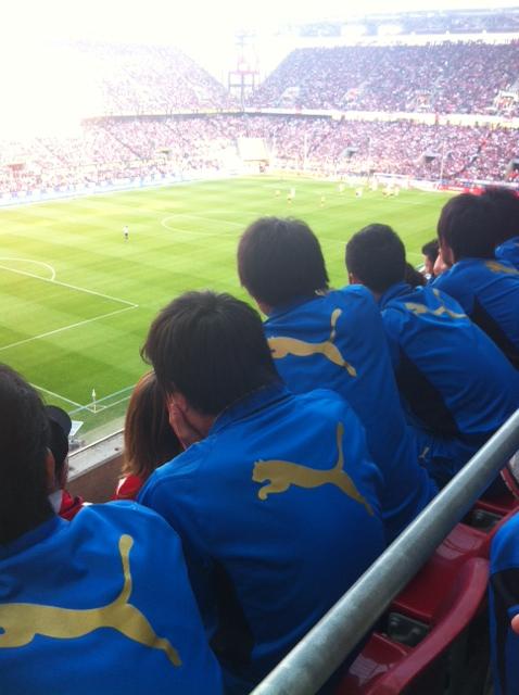 今日は1FCケルン vs ドルトムントのゲームを観戦。ドルトムントサポーターは日本人を見ると"かがわー"と大合唱。みんな嬉しそうに手を振っていました。試合も香川の2得点の活躍で6ー1、まさに期待通りでした。