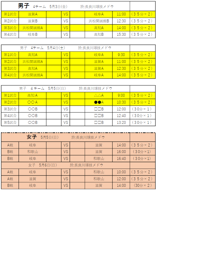日時 2024年5月3日~5月5日(U-16男子)5月5日~6日(U-16女子)