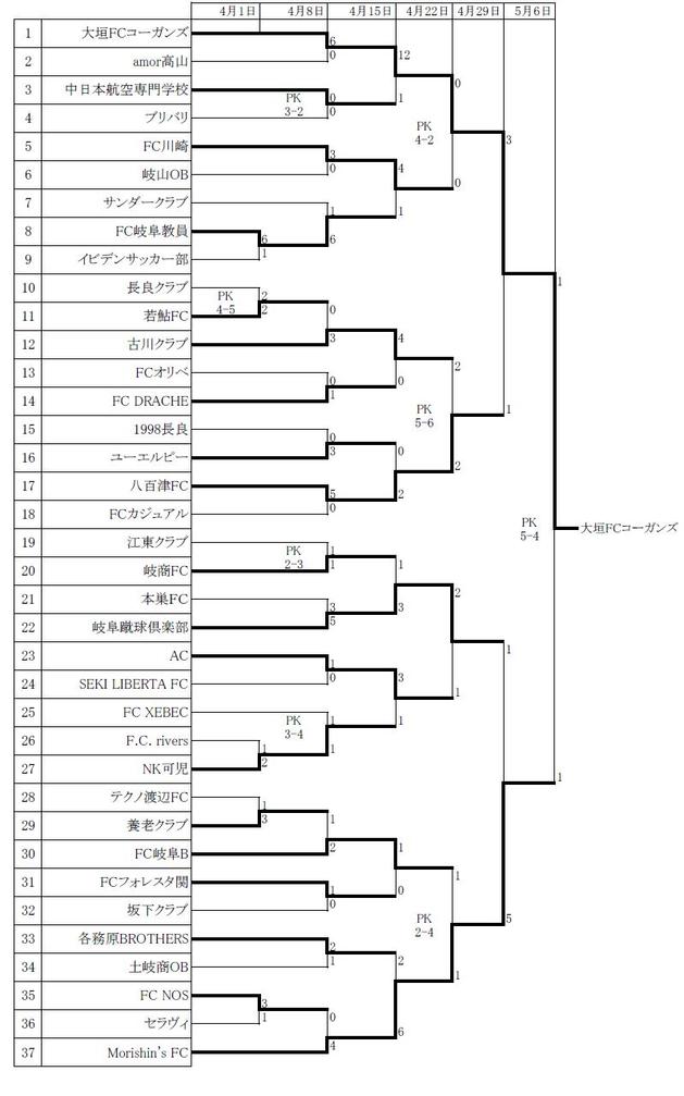 大垣FCコーガンズVsMorishin'sFCの決勝戦が行われ1対1のままPK戦を制した大垣FCコーガンズが優勝しました。