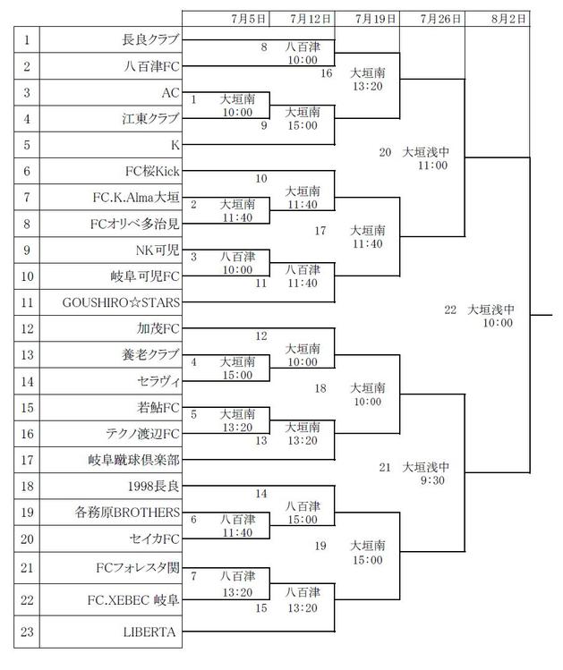 第16回全国クラブチームサッカー選手権岐阜県大会組合せ