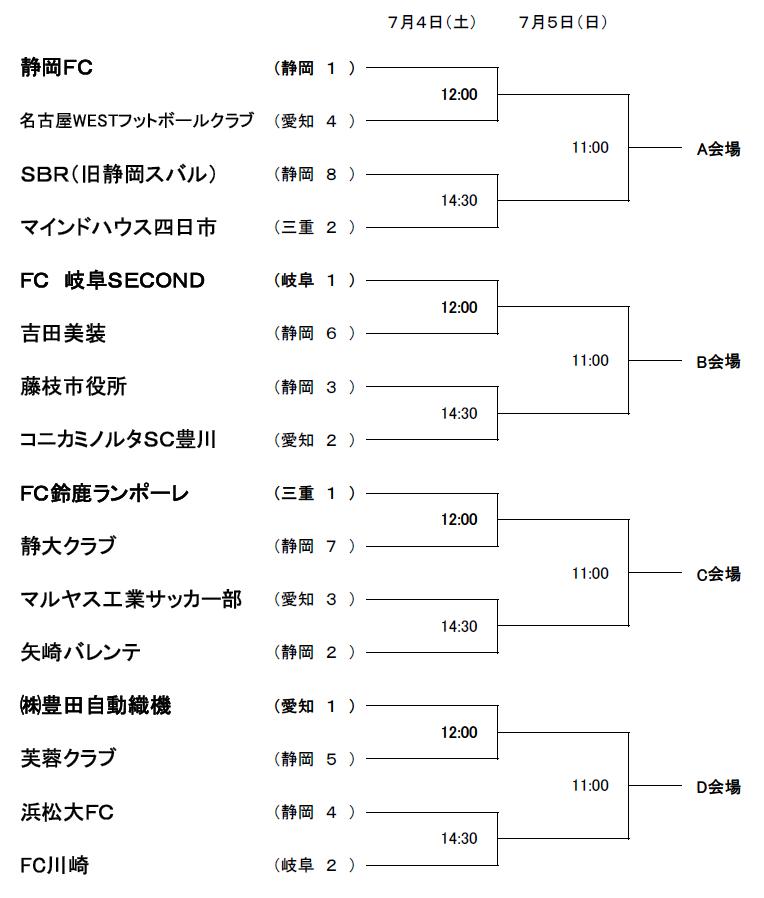 第45回全国社会人サッカー選手権東海地域大会組合せ