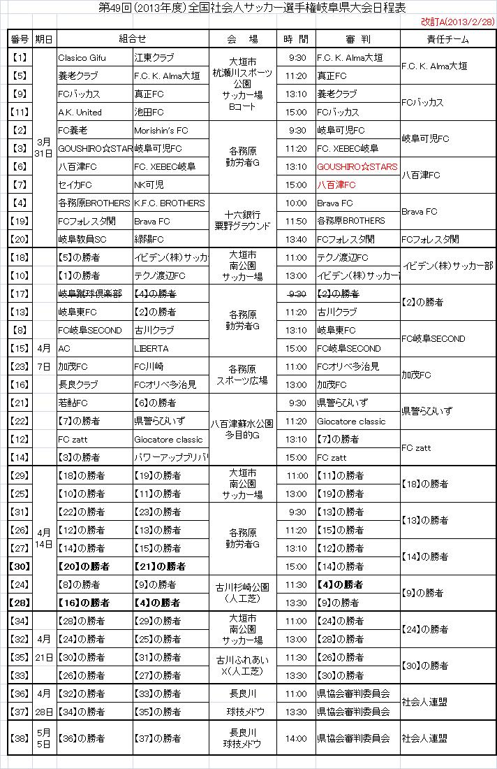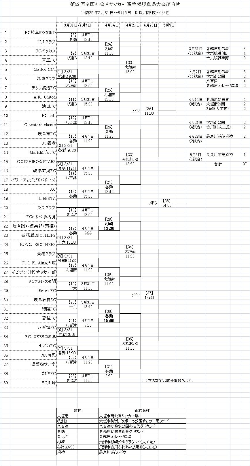 第49回全国社会人サッカー選手権岐阜県大会組み合わせ